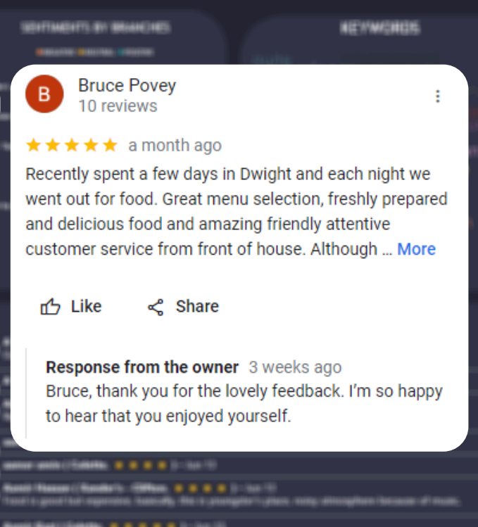 In the fast-paced world of hospitality, staying ahead of customer expectations is key to success. BackedByData is designed to empower hotels, restaurants, and other hospitality businesses with real-time insights that drive better decision-making and enhance guest experiences. Our platform aggregates customer reviews from various sources, including Google Maps and popular food delivery apps, to provide you with a comprehensive understanding of what your guests value most.